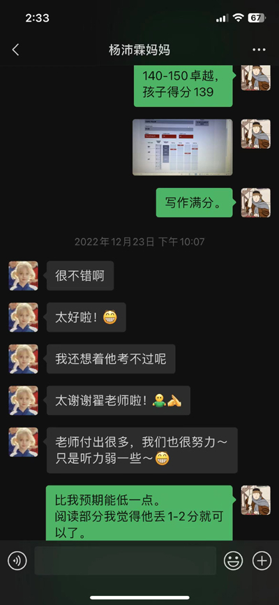 杨沛霖参加KET一对一基础班,学习很认真,通过努力,最终获得了将近卓越的成绩!